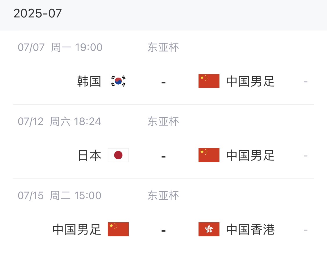 中国男足东亚杯赛程