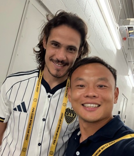 周通在社媒晒出了参加这届世俱杯的照片并配文写道: