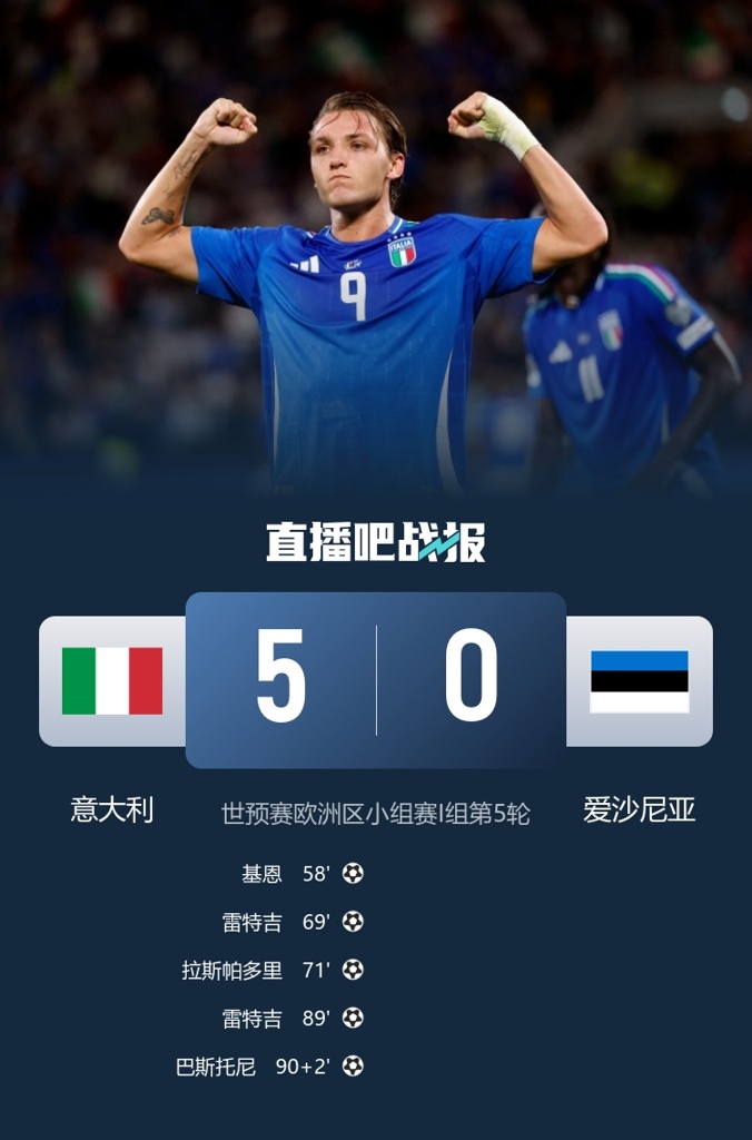 9月6日讯 据《共和报》报道称,意大利5-0爱沙尼亚的比赛期间,比赛一度因电话铃声中断。