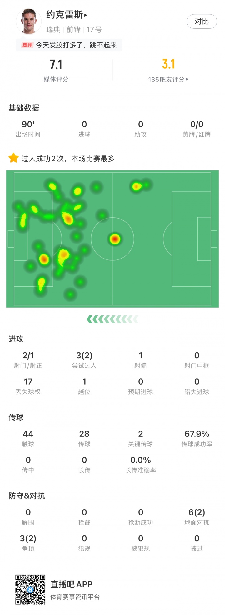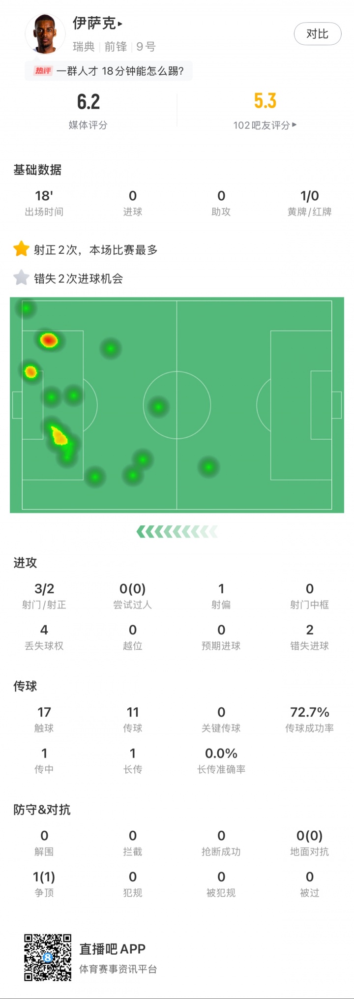 本场比赛,约克雷斯首发打满全场2射1正,伊兰加首发出战72分钟0射门,伊萨克替补出场18分钟3射2正,三人合计5次射门3次射正0进球。
